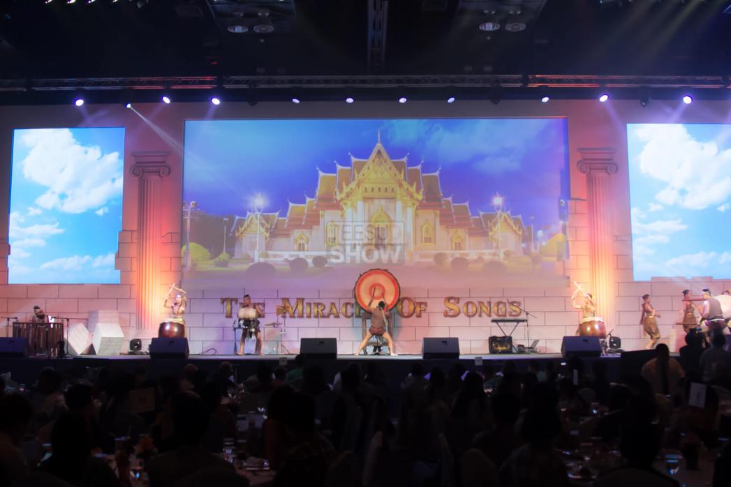 "THAI DRUM 4 REGION's Great Performance" is a Thai drum performance from all regions of Thailand that reflects the local culture through the drum sound of each region. At the same time, it brings together amazing and magnificent performances from all regions, creating an energetic and pleasing drum sound as attention-grabbing Thai dancers gracefully perform traditional Thai dances and "Fon Thien". A feature of the show is the multicolored sound of the drum.