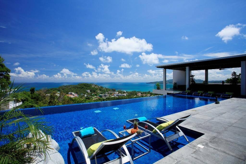If you are looking to rent a villa for celebrations in Phuket, this contemporary villa will exceed all your expectations. Spanning over 3,000 square meters across four floors, it offers 8 spacious bedrooms with panoramic sea views, en-suite bathrooms, air conditioning, and luxurious finishes.