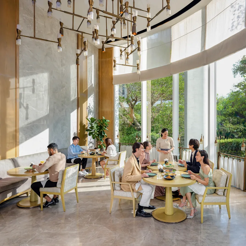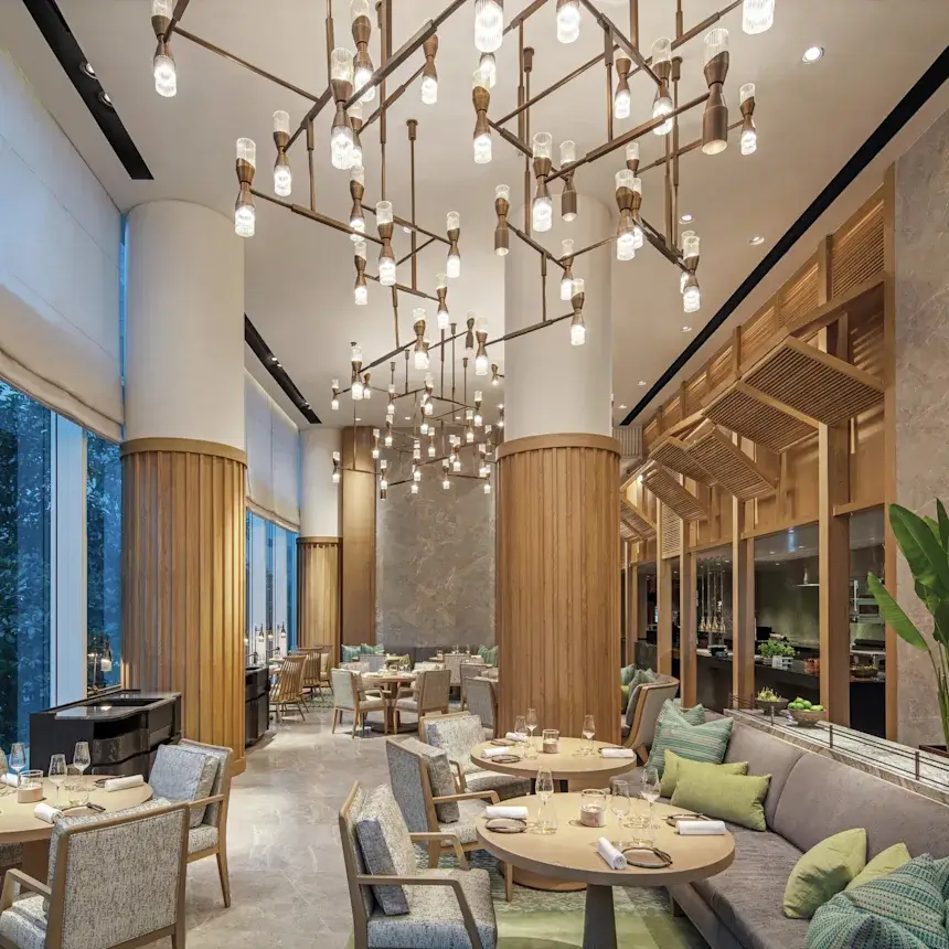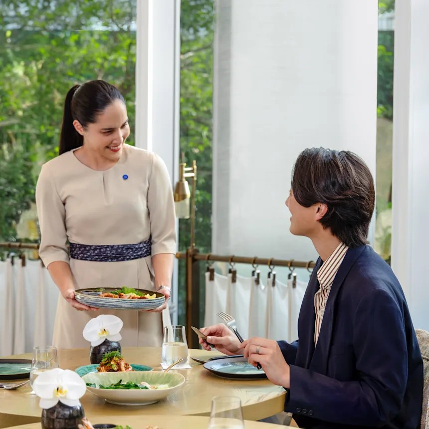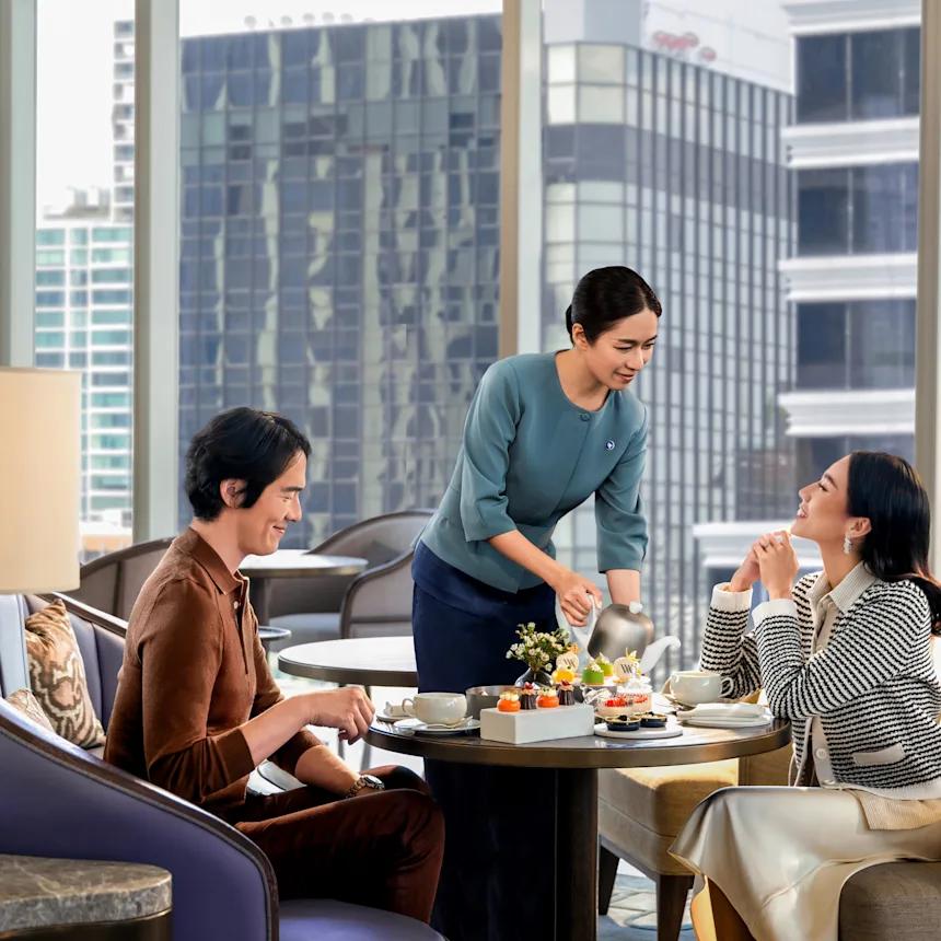 Каждый гастрономический момент здесь — настоящее представление. Тайская кухня переосмыслена с европейским изяществом, превращаясь в гармонию вкусов и текстур. Послеобеденный чай подаётся в изящном салоне, где время замирает, посуда звенит как арфа, а десерты выглядят как ювелирные украшения. А когда солнце начинает утопать в горизонте, на верхних этажах оживают коктейль-бары и рестораны с панорамными видами и атмосферой, способной превратить ужин в событие.