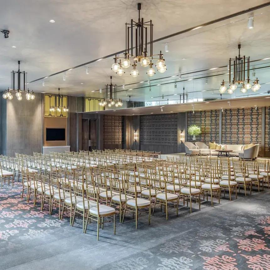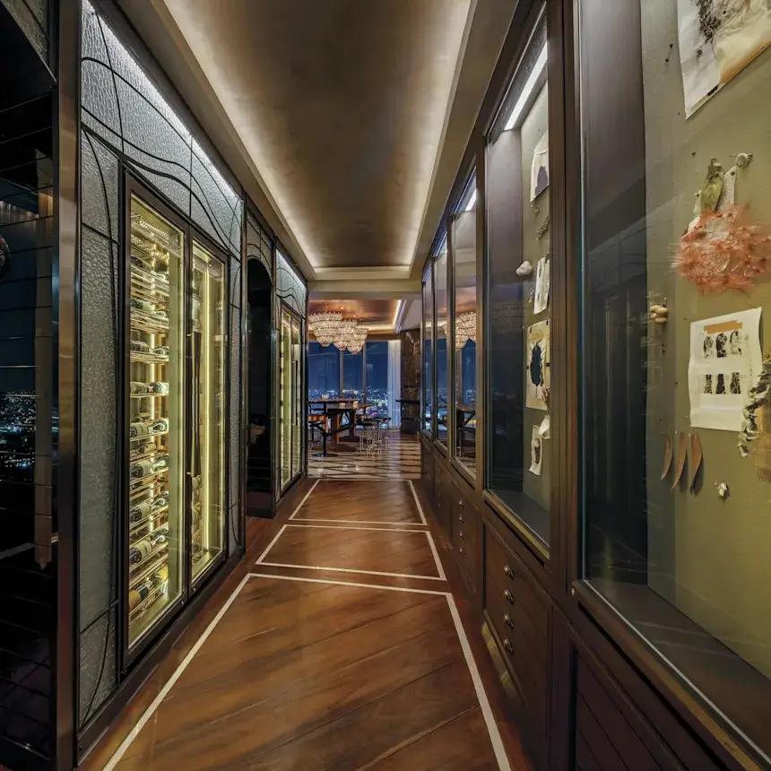 Если говорить о приёмах, вечеринках и торжествах, это место — как декорация к самому элегантному фильму. Более 1 700 квадратных метров пространства создают атмосферу светского великолепия: высоченные потолки, окна во всю стену, винтовые лестницы и хрустальные люстры. Грандиозный бальный зал — воплощение утончённости: тёплые золотистые тона, текстурированные панели, мягкий блеск, и всё это — в абсолютной приватности. Пространство рассчитано на 700 гостей и идеально подходит для событий, о которых потом пишут в колонках.
