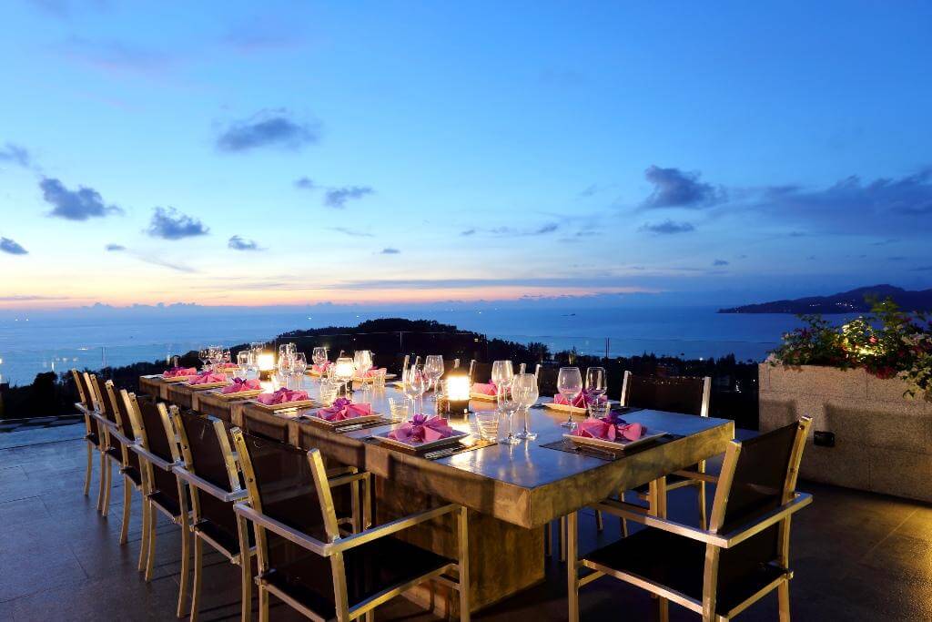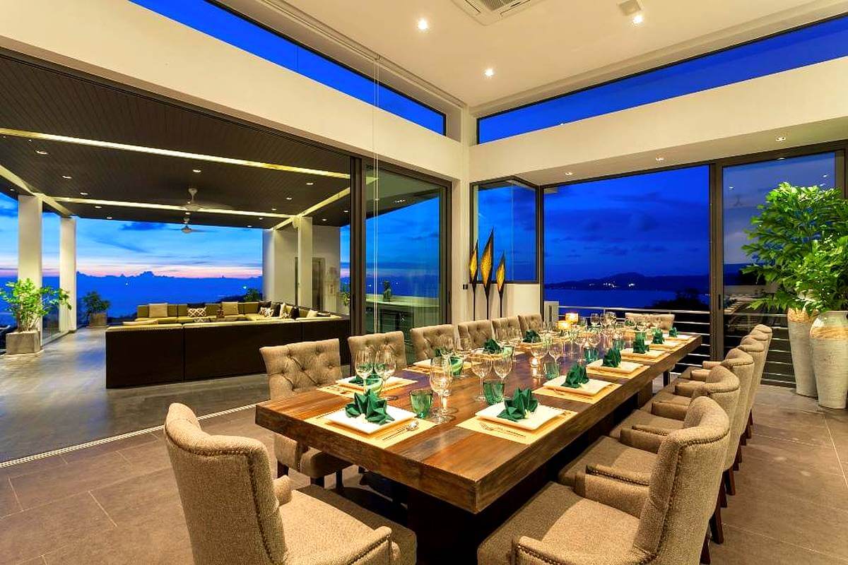 Вилла уникальна тем, что располагает двумя кухнями — ультрасовременной западной и традиционной тайской, что позволяет наслаждаться лучшими блюдами обеих кухонь. Для удобства гостей предусмотрена большая столовая на 16 человек внутри и крытая терраса на крыше с баром, зоной для барбекю и дополнительными местами для сидения на 16 гостей.