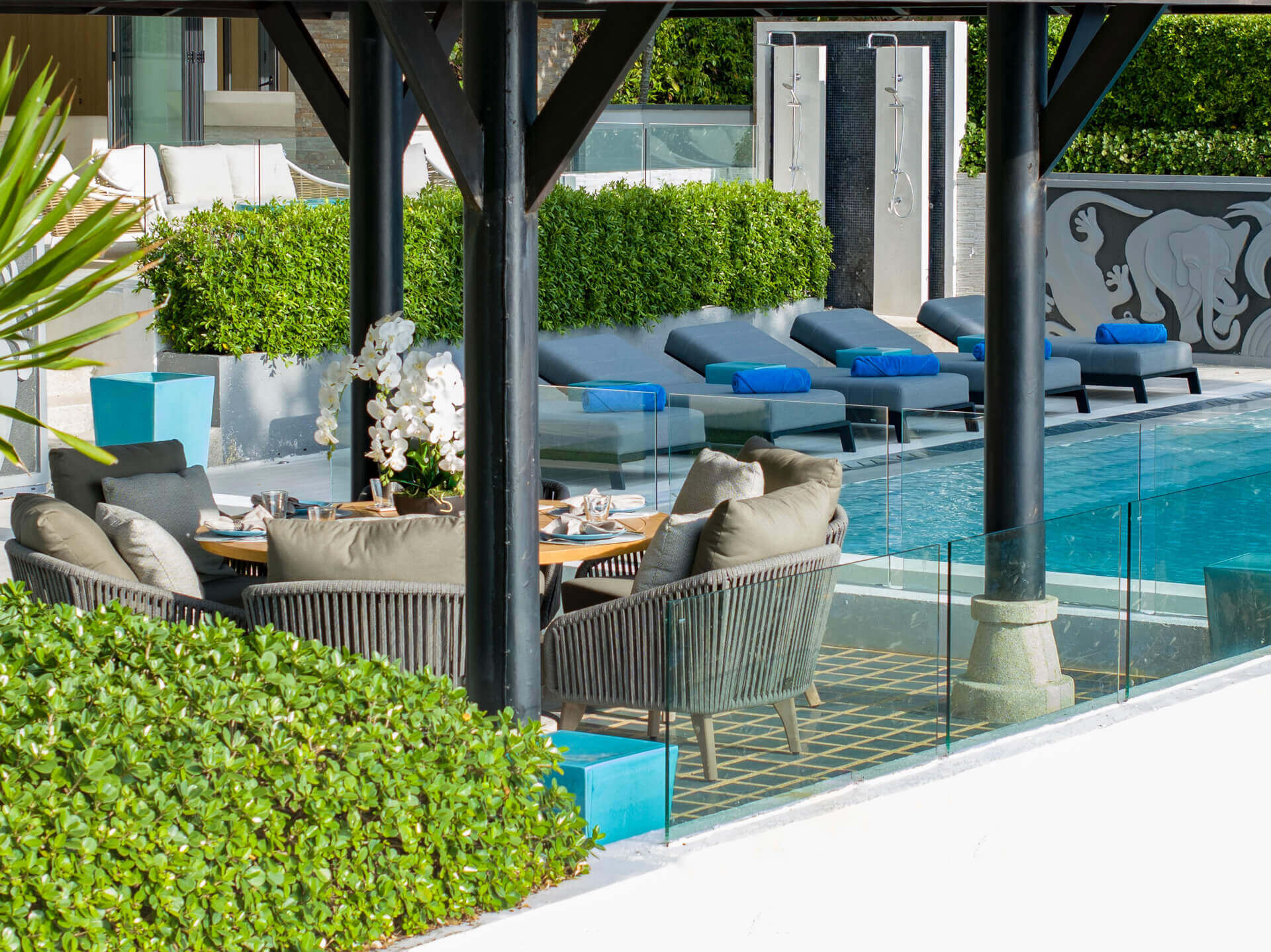 Для гурманов предусмотрена полностью оборудованная кухня, а также услуги шеф-повара, который приготовит блюда на любой вкус. Для ужинов идеально подойдут тайская сала или терраса с видом на море. Обеденные зоны внутри и снаружи вмещают до 14 гостей.