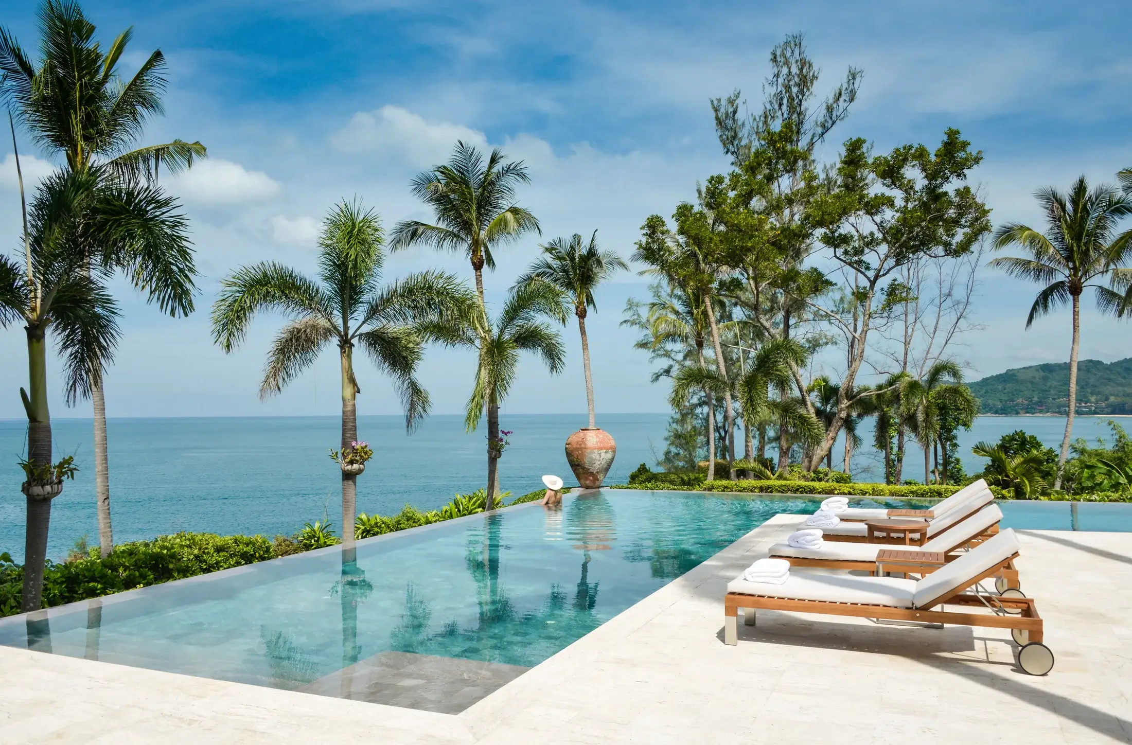 Уединённо расположенная на живописном мысе, эта роскошная вилла с 9 спальнями открывает захватывающие виды на море и утопает в тропических садах. Она идеально подойдёт для больших семей, компаний друзей или как эффектная локация для свадьбы на Пхукете, дня рождения на вилле на Пхукете или любого роскошного праздника на Пхукете. Площадь участка составляет 9 711 квадратных метров, что гарантирует полную приватность и атмосферу спокойствия