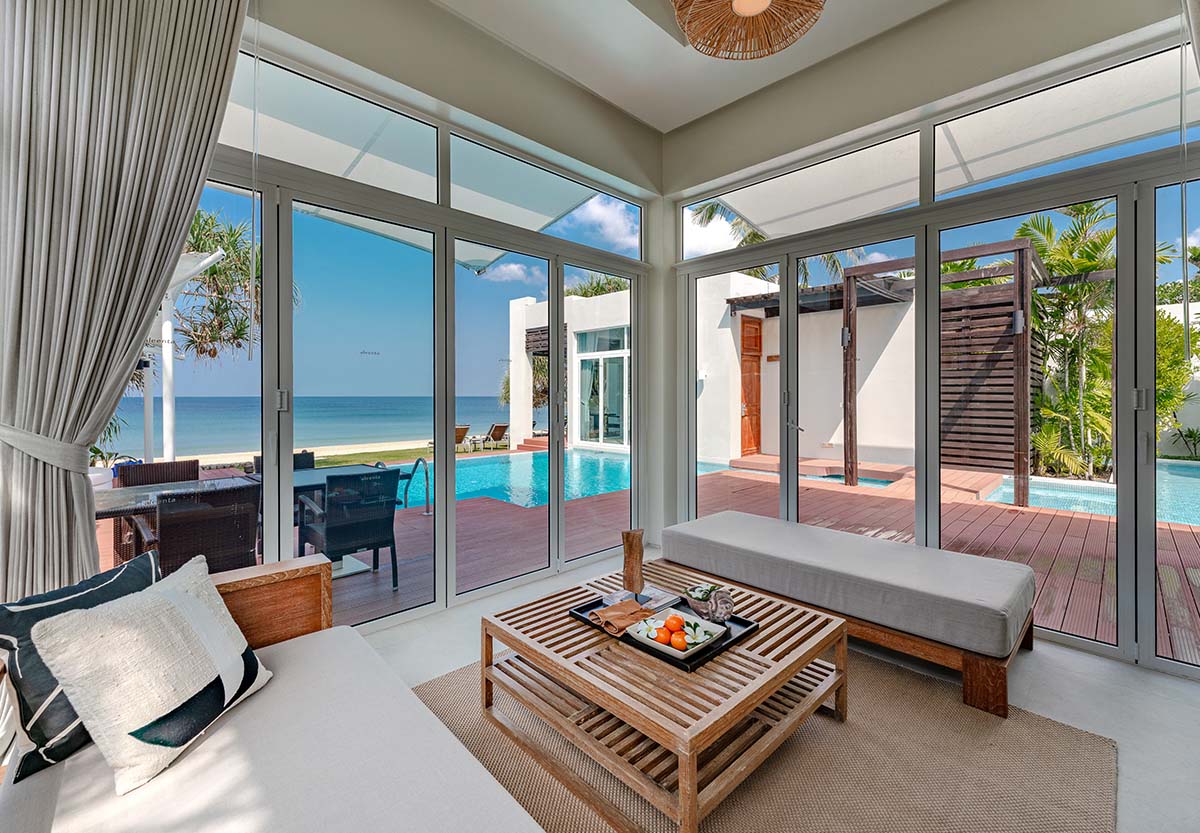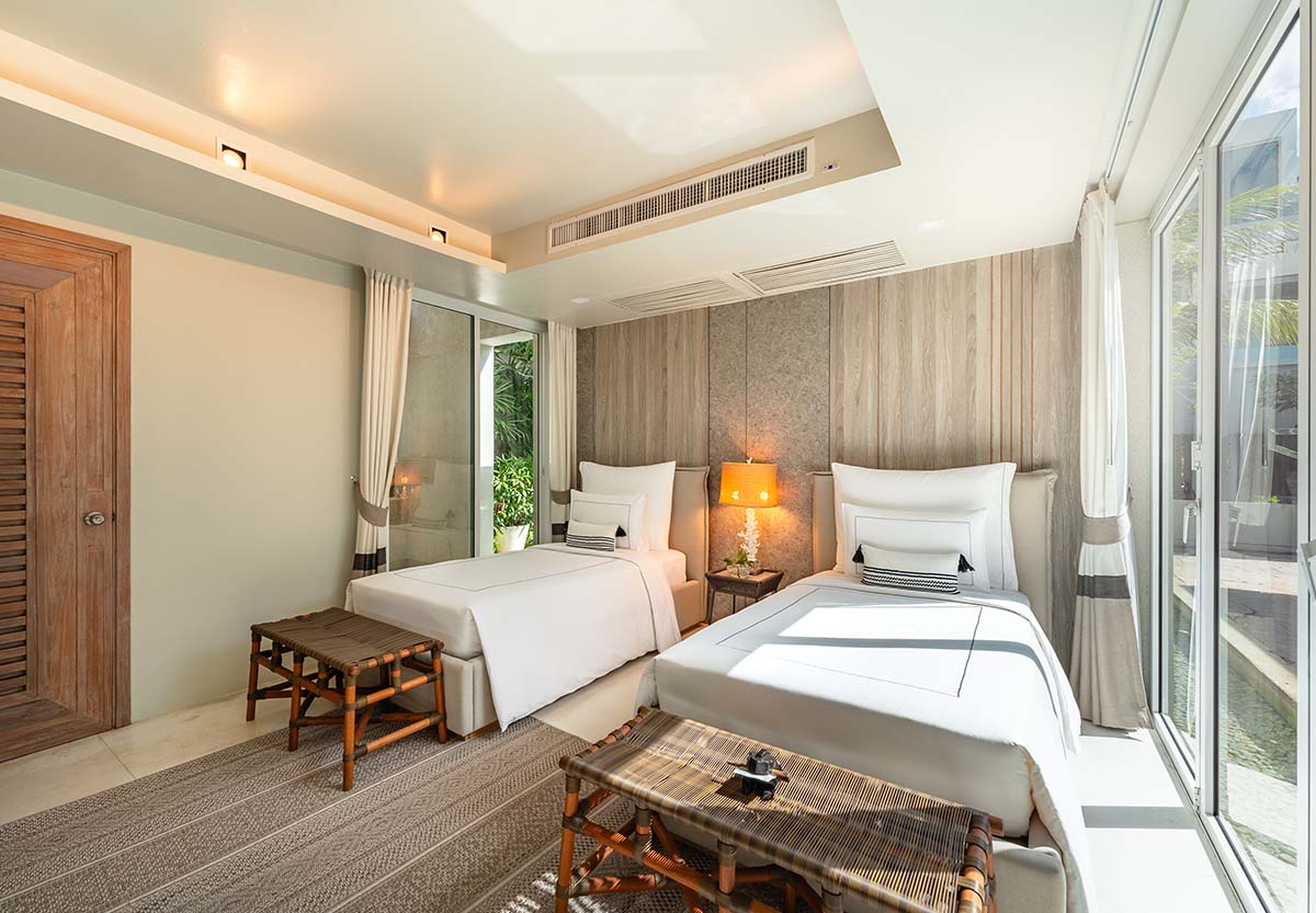 Три спальни выходят на великолепные виды Андаманского моря и располагают ванными комнатами с джакузи, а четвёртая спальня с видом на сад оснащена ванной комнатой с дождевым душем. Просторная гостиная и столовая с высокими потолками, современная кухня в западном стиле и большая деревянная терраса создают атмосферу для отдыха и проведения торжеств
